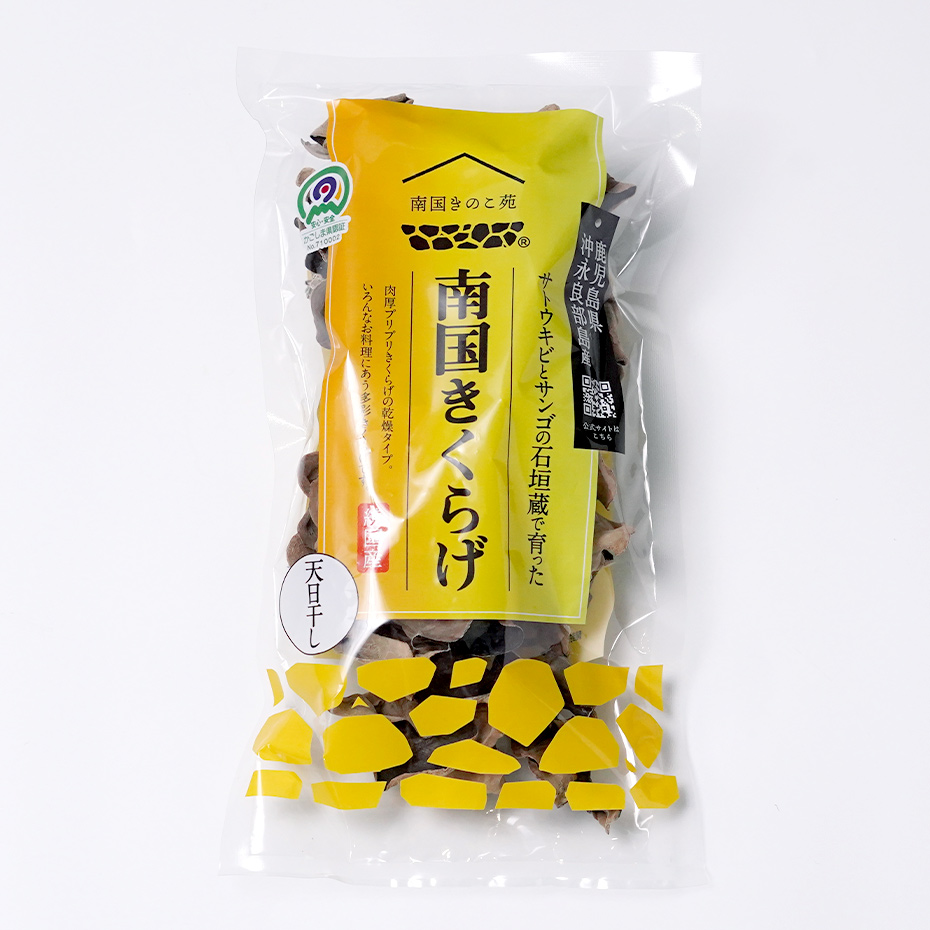 沖永良部島の自然とサンゴの石垣蔵で育った、南国きのこ苑の「きくらげ」を、そのまま乾燥させたホールタイプのきくらげです。